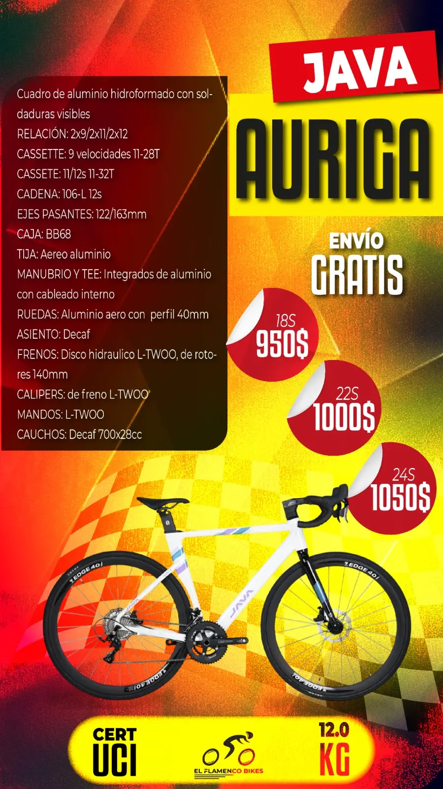 Bicicleta de aluminio con 24 velocidades, con componentes shimano 105 y horquilla de carbono