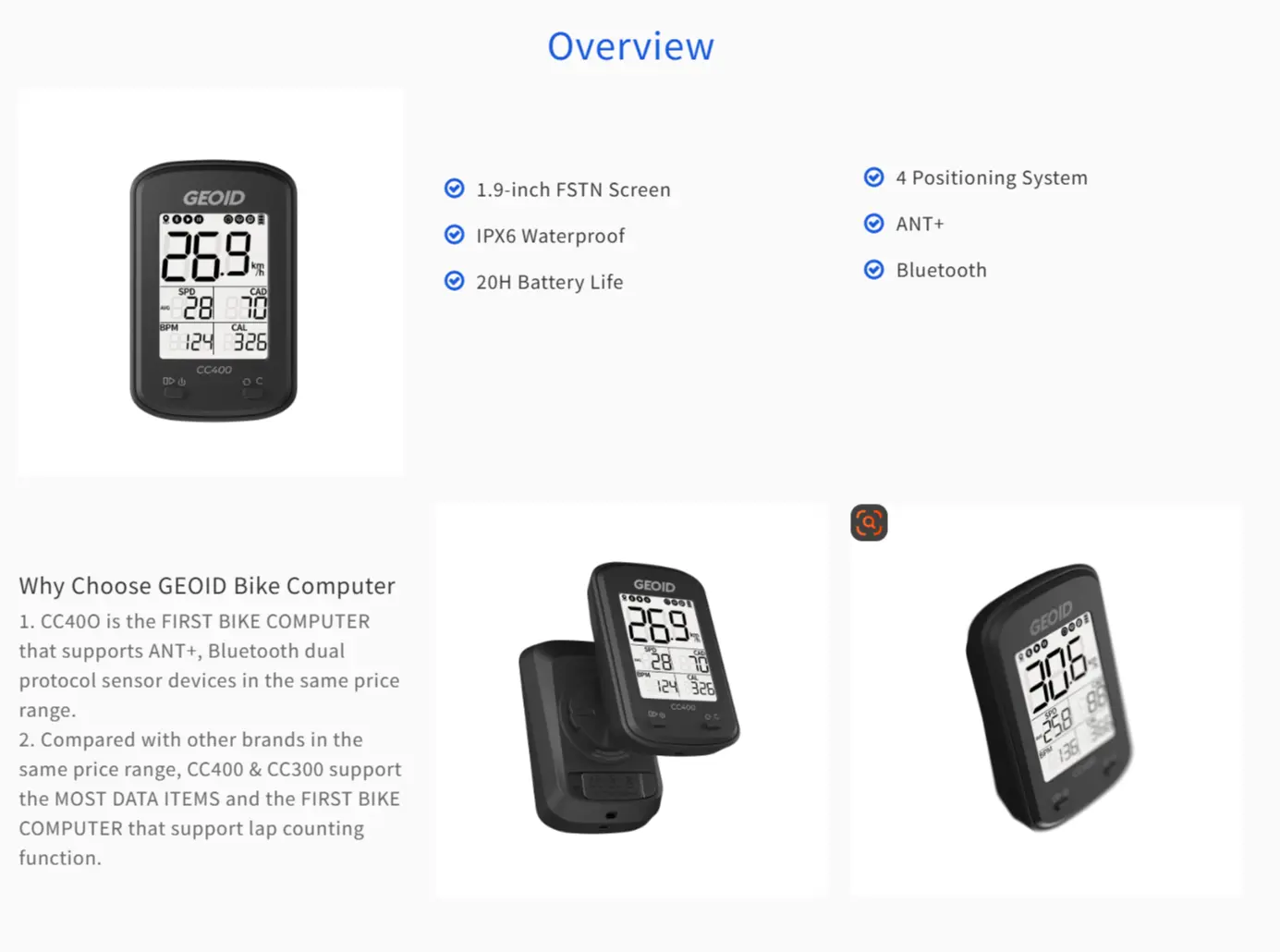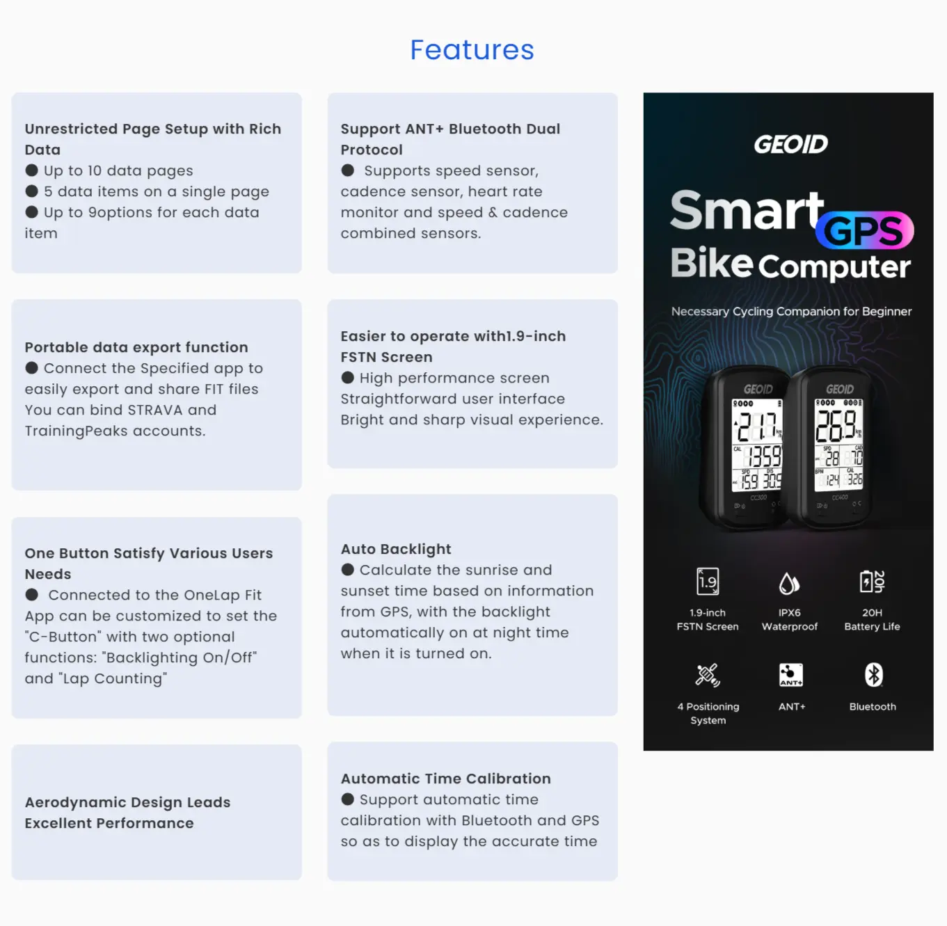- 1 x Ciclocomputador Geoid cc400 con GPS y ANT+
