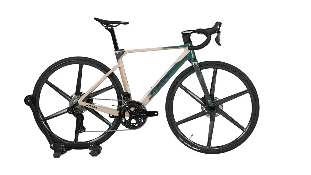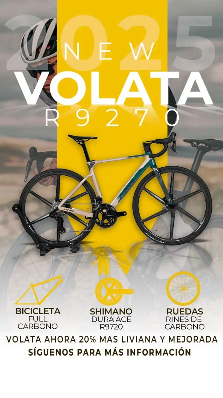 La Java Volata es una bicicleta de carretera de resistencia versátil y cómoda, diseñada con un cuadro liviano de fibra de carbono y componentes de primera calidad, perfecta para ciclistas que buscan rendimiento y comodidad en diversos terrenos.