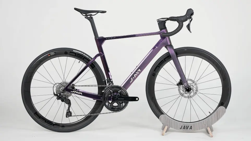 La Java Volata es una bicicleta de carretera de resistencia versátil y cómoda, diseñada con un cuadro liviano de fibra de carbono y componentes de primera calidad, perfecta para ciclistas que buscan rendimiento y comodidad en diversos terrenos.